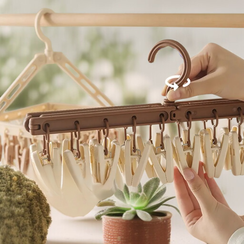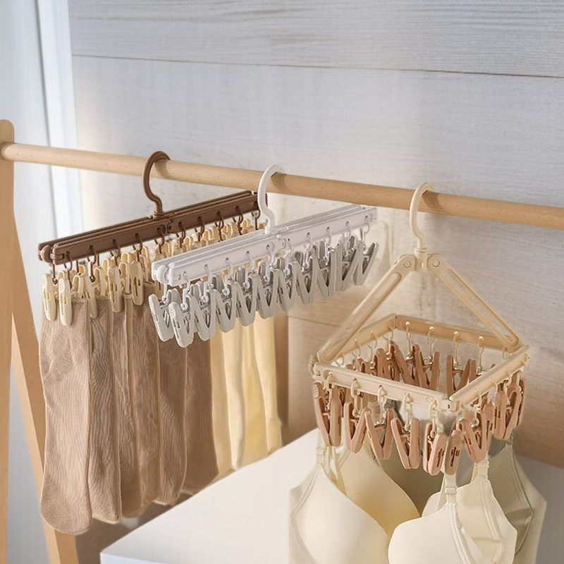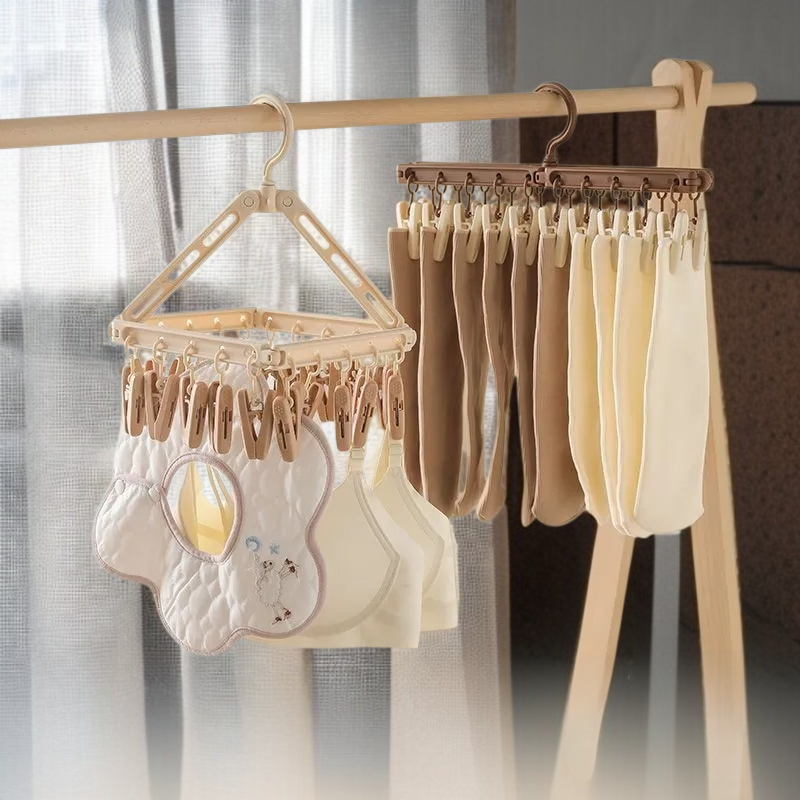 ● 멀티걸이와 집게가 포함되어 있어 다양한 종류의 아기 옷, 속옷, 양말 등 작은 빨래를 한 번에 간편하게 건조할 수 있습니다.